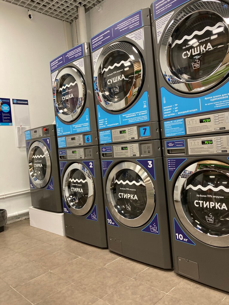 На районе появилась прачечная самообслуживания . Ну наконец-то! Сразу рванули стирать пледы. Руками стирать это ад. Напитавшись водой они становятся неподъемными. Жамкаешь их, а толку мало. Потом ждешь тучу времени пока вода стечёт с этого пледа. Ну и сушка занимает сутки времени, бельевые веревки на пределе возможностей держат эту тушу. Короче говоря геморроя с ручной стиркой пледа — "немеренно"! А тут загрузил, геля для стирки , кондиционера залил , и понеслась душа в рай. В итоге имеем чистый, вкусно пахнущий плед. В прачке, все машины с загрузкой 10 кг, и одна на 15 кг . Мы использовали 15 кг машинку , чтобы все отстиралось и прополоскалось хорошо. Стандартная стирка стоит 400 рублей при любой температуре от 40 градусов до 90 градусов. Сушка стоит 200 рублей загрузка. Стиральный порошок можно принести с собой, но есть возможность купить там. Порошок только для машинок автомат! А то пена полезет. Запрещается там стирать замасленную форменную одежду. И это правильно! Есть большой стол, на который можно выклалырать своё бельё Также есть тазики для выкладки чистого белья. Мягкие диванчики для удобного ожидания стирки. Есть раковина с краном, в которой можно ополоснуть руки. Прачка новая, вся техника новая. Очень приятно. Отстирались мы за 2 часа , пледы "свежие, мягкие ". И не после себя протирать за собой машинки , чистить фильтры в сушилке!!! Вывод: это отличная прачечная! Экономия времени , финансов. А главное качественно постирали большой плед. Будем теперь пользоваться на постоянной основе. Отдельное спасибо отзывчивому консультанту Ирине.