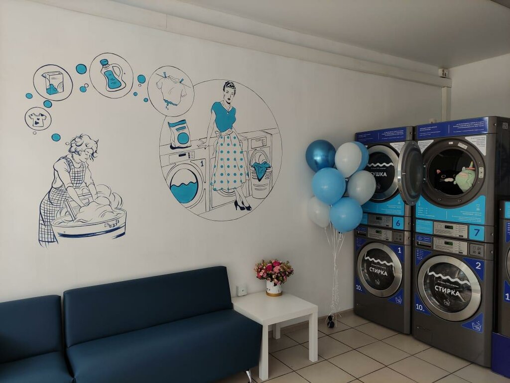 Прекрасный дизайн машинок стен. Стирают вещи аккуратно отдают без пятен. Если есть пятна выводят. Можно заплатить 100-150рублей консультанту , чтобы он переложил вещи с стирки в сушку. Вообщем ходила уже 4 раза отдавали все стираное и с вкусным запахом. Консультант добрый всегда подсткажет(их там 2 ) попадала к 1 женщине Ставлю пять звёзд