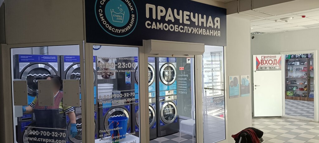 Пользуюсь регулярно этой прачечной самообслуживания для стирки пуховиков, пледов и одеял. Стиральные машины 2ух типов на 10 и 15 кг. Есть сушильные машинки, высушивают хорошо, дома нужно ещё на пару часов развесить и бельё сухое. Цены адекватные. Каждая 6ая стирка и сушка бесплатно с привязкой к номеру телефона.