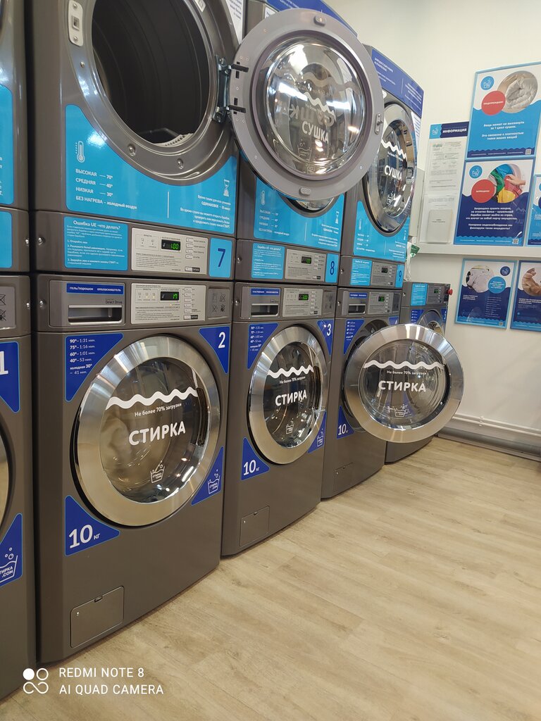 29.03.25г. Хорошая прачечная, машин много ( 4 для стирки 10кг, 1 на 15кг и 4 для сушки). Качество стирки хорошее. Один маленький минус - сложно очистить фильтр в сушильной машине. Нет ни пылесоса, ни влажных салфеток. В остальном твёрдая пятёрка. 06.12.25г. Ещё неделю назад стирка стоила 400р, а сегодня уже 500р. Неприятно не то, что цены растут (к этому давно все привыкли), а то, что новый ценник висит, но на дисплее машины указана старая цена.