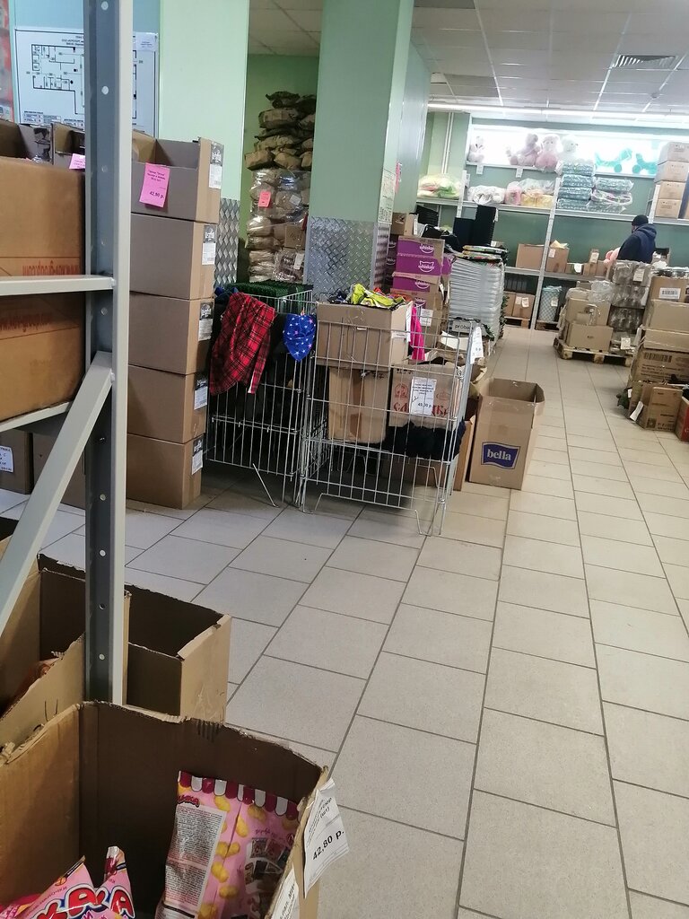 Добрый день! В зале чисто, добавили стеллажи для товаров. Ассортимент очень широкий. Цены низкие. Много бытовой химии, разных видов печенья в коробочках, конфет в пачках, кофе, чай, посуда, товар для дома, сада. Детские товары, канцелярия, корм для животных, крупы, сахар, соль, сгущёнка, майонез и т. д