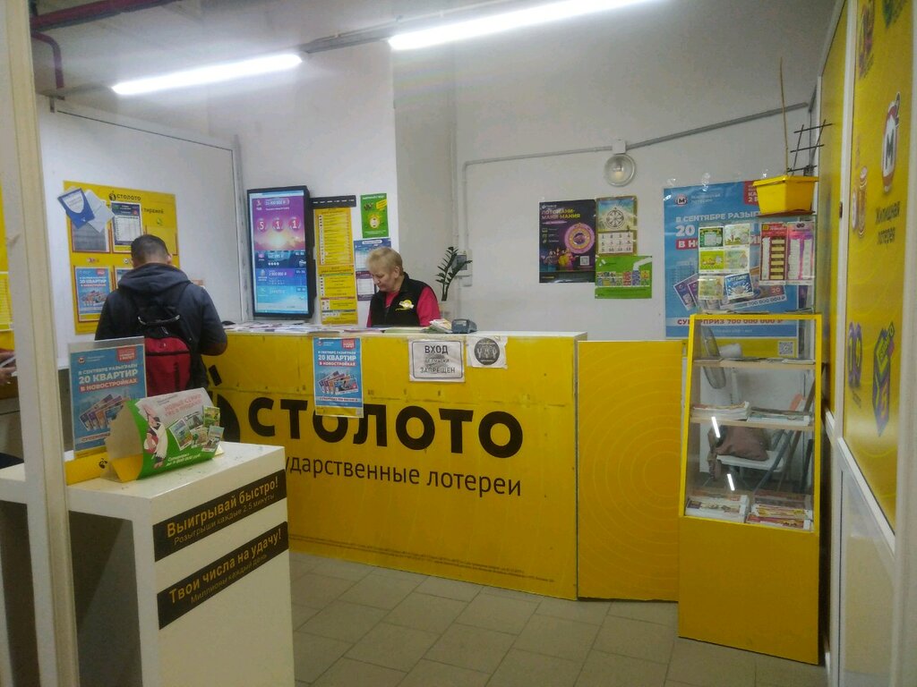 Билетов лотерей очень много. На стене висит терминал, который показывает моментальные лотереи. Но как и во всех лотереях этой структуры, разыгрываются только 50 процентов собранных денег, поэтому играть в "это" не рекомендую. А денег даже для выигрыша в 300 рублей у кассира с ее слов может не быть, почему то, хотя передо мной мужчина купил билетов на 900 рублей. Но, скорее всего, это уловка, чтобы втюхать еще билетов.