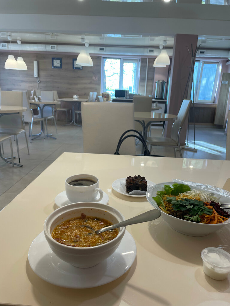 При посещении столовой складывается приятное впечатление путешествия в СССР 😊 интерьер (один только цементно-мраморный пол чего стоит), обстановка, самообслуживание, всё из того времени. Блюда, расскладка, подача тоже из того спокойного времени, еда очень, по-домашнему, вкусная, приготовлена с русской душой 🥰 цены очень доступные. Вежливый персонал, большой выбор блюд, выпечка… короче всё как мы любим! ♥️ Рекомендую! Столовая находится в здании гостиницы.