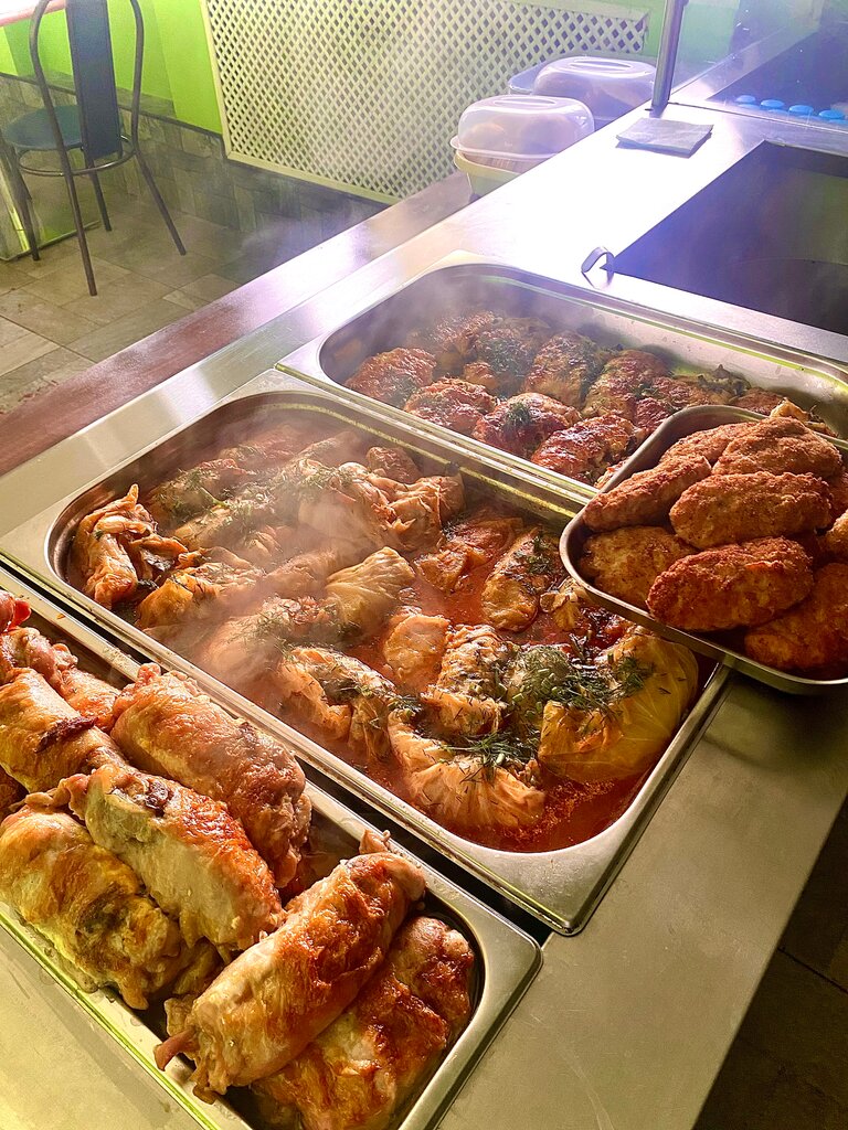 Не большая столовая, с домашней кухней. Большие порции, вкусно, как дома. Одноразовая посуда - очень удобно. По цене - дёшево. Удобный заезд, парковка.