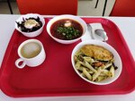 Это ужасная столовая. Пищеблок грязный, плиты все залиты. Подносы тоже грязные, вонт жиром, вилки грязные, то что есть в меню нет в ассортименте. Одним словом - ужас. Даже есть после этого не хочется.