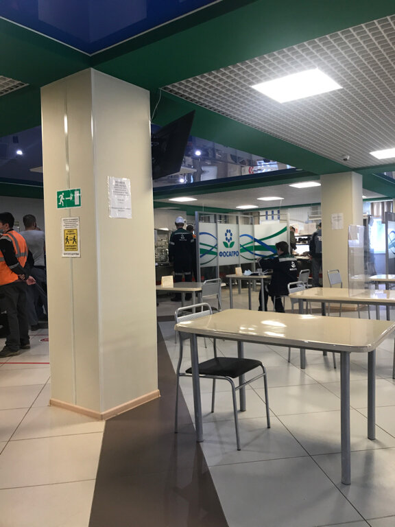 Отличный персонал, своевременная уборка столов, Вкусная и разнообразная еда. Напитки в ассортименте. Можно купить печеньки, конфеты, шоколадки, газировку в бутылках. Есть места для посетителей в "гражданском" - диваны, правда постоянно заняты работниками в "чистой" робе. Светлый просторный зал. Большой гардероб. Умывальники на первом и втором этажах.