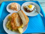 Перед вами 365р (октябрь 2025) что в переводе на еду = бифштекс с яйцом, варёная картошка, хек в кляре и салат мимоза..... - это просто вау! Заскочили сюда случайно и вообще не пожалели, внутри уютно и вкусно пахнет