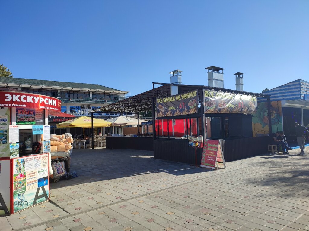 Хорошая столовая, не смотря не то, что на улице. Чисто, имеется детский стульчик, вкусно, разнообразно, цены приемлемы. Вечером живая музыка, можно заказать шашлык, вино и посидеть. Недостаток: уж слишком громкая музыка, но там везде так.