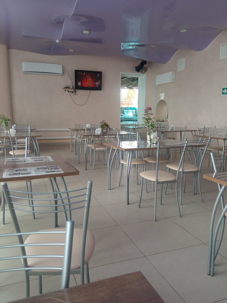 Хорошая столовая, есть банкетный зал. На первом этаже кафе дублирует часть продукции на продажу. Меню нормальное, есть шаурма( острая) и много выпечки с разными видами фарша.