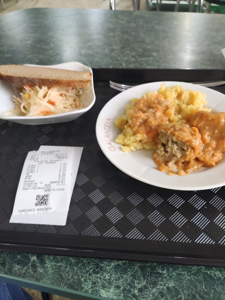 I accidentally got into this dining room, as if I had returned to the distant past. . The dining room is located on the territory of the enterprise, on the 2nd floor of the production building, there are no signs. . In terms of prices: in my opinion, a salad of fresh cabbage, beetroot salad and a portion of boiled rice is 7 rubles expensive. Salads were about 2-3 tablespoons in volume.