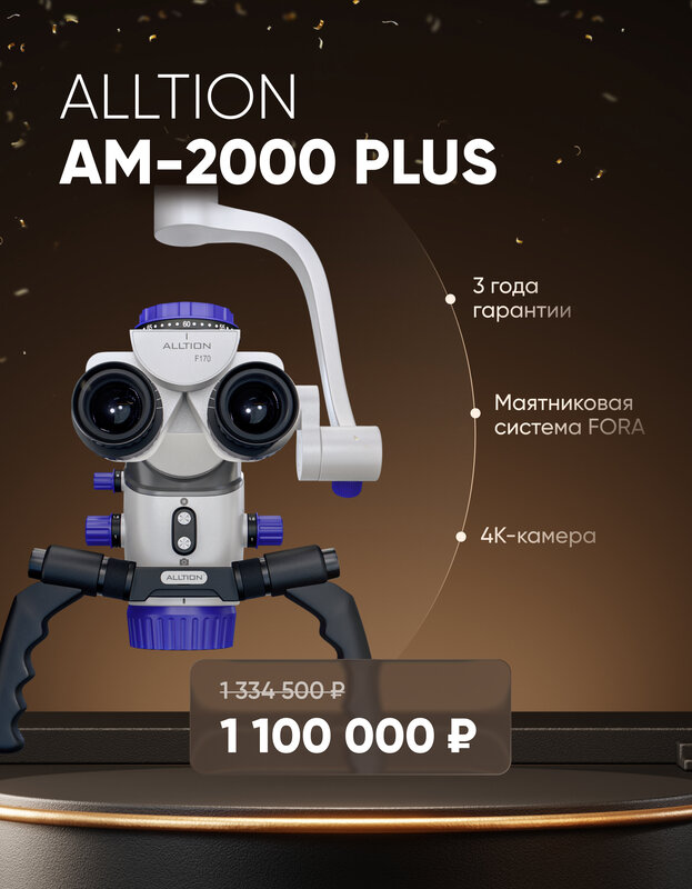 С микроскопом долго выбирали, бюджет был до 1,5 млн, но хотелось нормальную оптику и свет. Алексей из Стомарт предложил посмотреть Alltion 2000 +. По ощущениям это реально гибрид цейса и лейки, за эти деньги лучше ваарианта просто не нашли, Функций хватает и для терапии, и для ортопедии, в работе зашла сразу