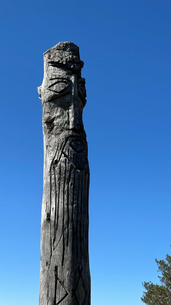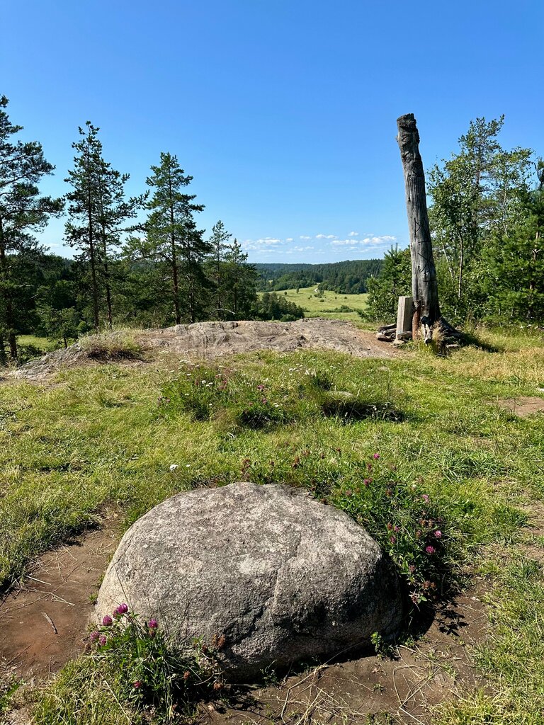 Очень странная локация, гора без названия и "саамские лабиринты". Вот редко пишу так, но вот прям нет смысла сюда ехать. 3км по убитой грунтовке, метров 700 по дороге в поле до опушки леса, чтобы что? Чтобы посмотреть на камни лежащие в траве, то ли древние, то ли новодел, но если бы не яндекс метка, может и мимо бы прошел. Каменная спираль примерно10х10 метров.... говорят место силы... говорят место духов... не знаю, под мелким моросящим дождем я ощутил разочарование... Нашел в интернете информацию о том, что на вершине горы установили идол бога "Рода", но, на вершине нашелся только лежащий и полусожженый в костре идол (видимо крестоносцы опять с земель западных приходили, опять тевтонский орден пакостит"... Есть здесь еще странная рогатина с ленточками, и если бы я знал что это... но я не знал что это... Яндекс говорит что с другой стороны есть еще один лабиринт, но мне хватило одного, да и дорогу в мокрых зарослях травы на обочине я не нашел, хотя честно говоря и не сильно искал. Вобщем, если шиззотерика ваша сильная сторона, приезжайте и заряжайтесь