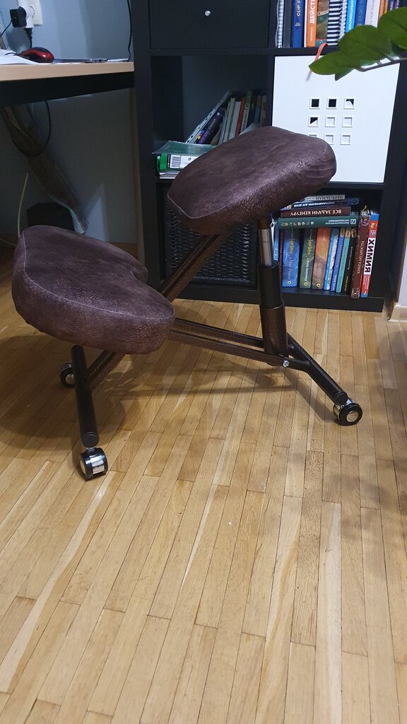 Долго выбирала вариант коленного стула между обычным и со спинкой. Связалась с продавцом. Он меня отговорил от лишних трат на стул со спинкой. Предложил попробовать сперва. Очень благодарна ему за это! Попробовав коленный стул, поняла, что спинка на нем реально ненужный аксессуар (центр тяжести смещен вперед и облокачиваться на спинку совершенно не требуется). А стулья со спинкой вообще-то дороже. Честный продавец, не стал навариваться на моей неосведомленности)) Покупкой довольна
