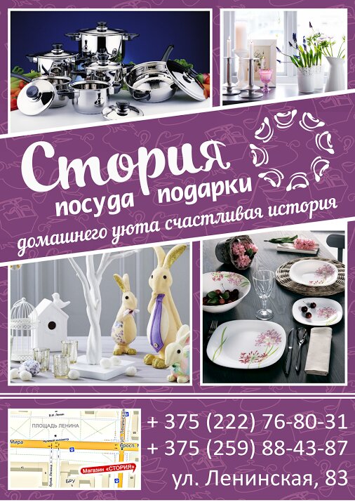 Очень приятный магазин с огромным выбором посуды и подарков. Действует система скидок. Рекомендую!!!! Стория - домашнего уюта красивая история!!!