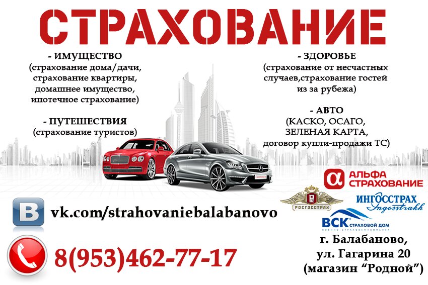 Cooperation with insurance companies:ВСК, Ingosstrakh, AlfaStrakhovanie, Rosgosstrakh