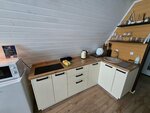 Все очень продумано. Есть все для комфортного проживания и даже больше: эл.плитка, разнообразная посуда, пледики, холодильник, телевизор, яндекс колонка, настольные игры. Кровать на 2 этаже, но внизу раскладывается диван. Подсветка и фонарики создают настроение. Очень хорошая территория и великолепная баня.