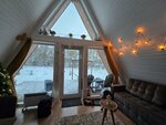 Самый роскошный и нежный А-фрейм в нашем глэмпинге с горячей купелью фурако на веранде и незабываемым видом на опушку леса. Панорамное остекление, сетка-гамак на втором этаже, большая колонка Алиса, быстрый и бесплатный Wi-Fi, Smart TV ...