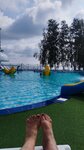 Отдыхали с мужем и с внуками в августе.Поселились в номере Джуниор !👌👍 .В номере комфортно , удобная двухспальная кровать и большой вместительный диван. Чайник, холодильник, микроволновка и набор посуды. Вода горячая 👌, холодную можно пить из крана. Постельное бельё белое из премиального хлопка! Вообщем, всё для комфортного отдыха!!! Вдоволь закупались в бассейнах , дети на катались с водной горки!!! Такое чувство, что даже вода целебная ( у меня коксартроз суставов ,а после купания мне намного стало легче 💥) Детям вообще раздолье - аттракционы , отличная детская площадка, батут !!! Территория ухоженная , свободно гуляют кролики.Чисто везде!!! Покушать можно было в кафе ( заказывала себе том Ям!!) Завтраки были включены в стоимость. В основном мы готовили сами - у номера был мангал.Очень интересно было побывать в авиарии , разные птицы, белочки. Пляж так же понравился, погода правда уже была не для купания - но бассейны нам в помощь 😜 Конечно приедем ещё ! Отдельное спасибо администраторам - гостеприимство и ответы на все вопросики мы получили!!! ❤️🔥