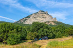 Плюсы: недорого со своей палаткой, есть водоем (пруд), симпатичный вид на гору и окрестности, после 10 не шумят. Минусы: ужасно воняет туалет, поэтому какие-то туристы делают свои грязные дела за домиками (там все заминировано), запах, соответственно, там не самый приятный.