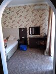 Сам отель хороший. Комнаты комфортные, высокие потолки, душ/туалет в номере, в номере есть ТВ.,стол ,стул,зеркало.Вид с балконов -отдельное наслаждение для души 😍,по номерам вопросом нет вообще,единственное,что шумно очень ночью,вечно ездящие с музыкой машины утомляют, на цокольном этаже есть общая кухня, за отдельную плату стирают вещи и сразу сушат. Дворик не большой, но уютный,2 машины помещаются на парковке,до моря ну минут 8-10, на море идешь легко, а вот когда покушал и назад поднимаешься 😁уже тяжко) Рядом есть, магнит, аптеки, центральный рынок, столовые. НО так же есть БОЛЬШОЙ МИНУС 🤦‍♀️Это обслуживание, от слова НИКАКОЕ! За всё время ни разу не поменяли постельное, ни разу не убрались.Нам ответили так, если надо попросите!! Так ещё и заселили нас в номер,как съехали жильцы до нас,так всё и осталось,даже песок не подмели на полу🤦‍♀️ Я бы проработала с персоналом стандарт обслуживания, по отелю (8 *) а вот по обслуживанию (0*)
