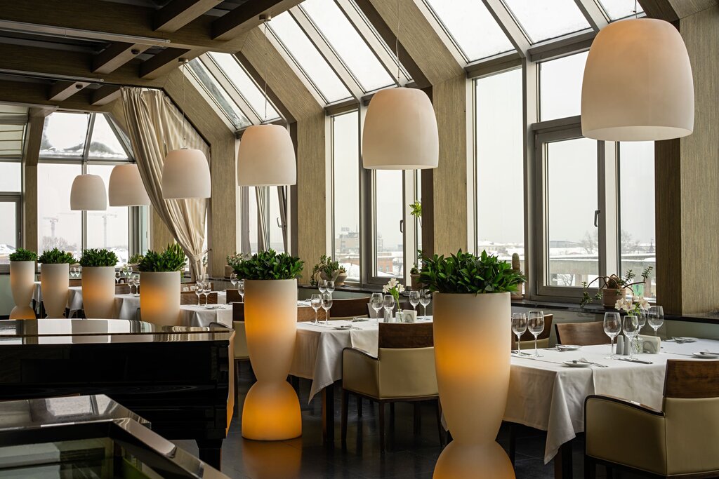 Просто хороший дорогой ресторан и все связанные с этим атрибуты: белые скатерти, подача блюд с клошем, крем для рук в уборной, чистота и т.д. Критерии: 1. Интерьер - в ресторан приятно подниматься через красивый холл отеля. В самом ресторане большие панорамные окна (не все из которых, правда, чистые) с прекрасным видом. Особенно понравился подоконник из камня (это мелочь, которую большинство гостей, скорее всего, даже не замечают, но это добавляет общее приятное впечатление) 2. Еда - просто хорошо (без вау) и очень дорого. Дорого даже в сравнении со столичными титулованными заведениями. 3. Уборная - достойно. 4. Персонал - отдельная благодарность Владимиру. Он старался всегда держать нас в поле зрения и, при этом, не мешать нам. От большого старания некоторые действия были неловкими, но общее настроение от взаимодействия исключительно положительное - это большой плюс в обшую копилку заведения.