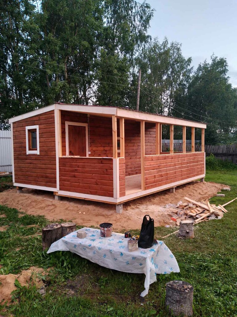 Построили нам каркасную баню — работа выполнена профессионально. Материалы качественные, сборка аккуратная. Тепло держит отлично, париться одно удовольствие. Уложились в срок, всё чётко! 👍