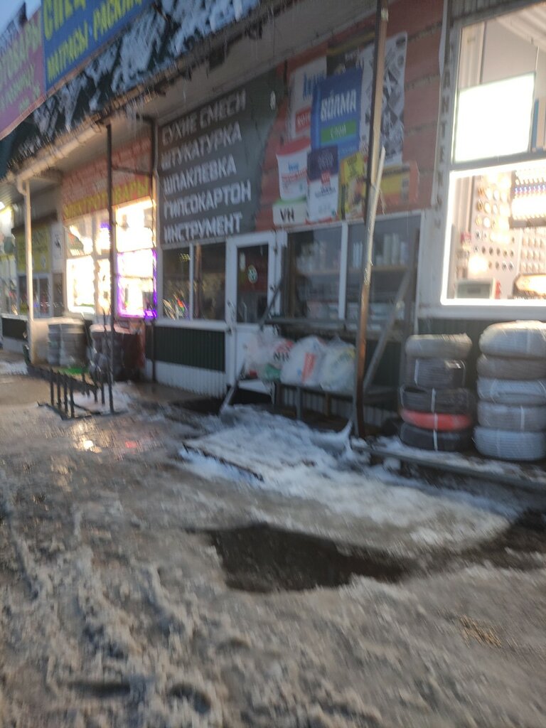 Большой выбор строительных и отделочных материалов, есть парковка прямо на территории.
