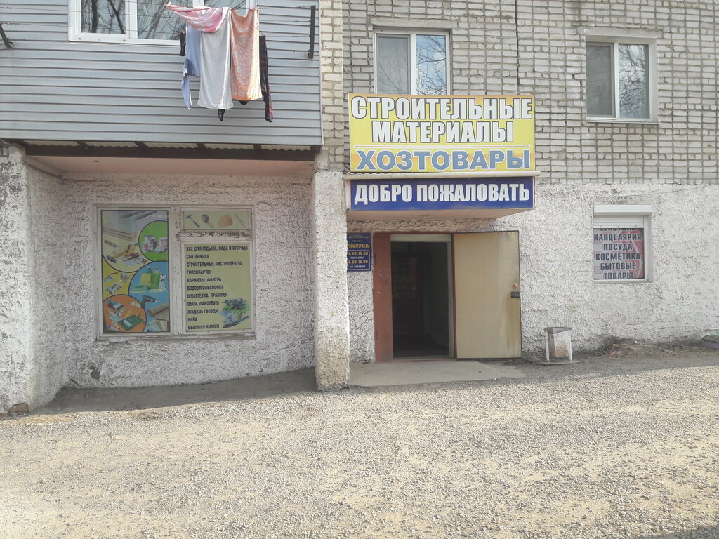 Небольшой магазинчик хоз.товаров и строительных нужностей. Очень даже приличный и необходимый в этом районе. В него охотно приходят жители окрестных домов, даже с других районов города приезжают, потому что цены очень даже приемлемые, а на некоторые товары, даже ниже, чем в других таких же магазинах. В общем очень нужный и удобный магазин!!!