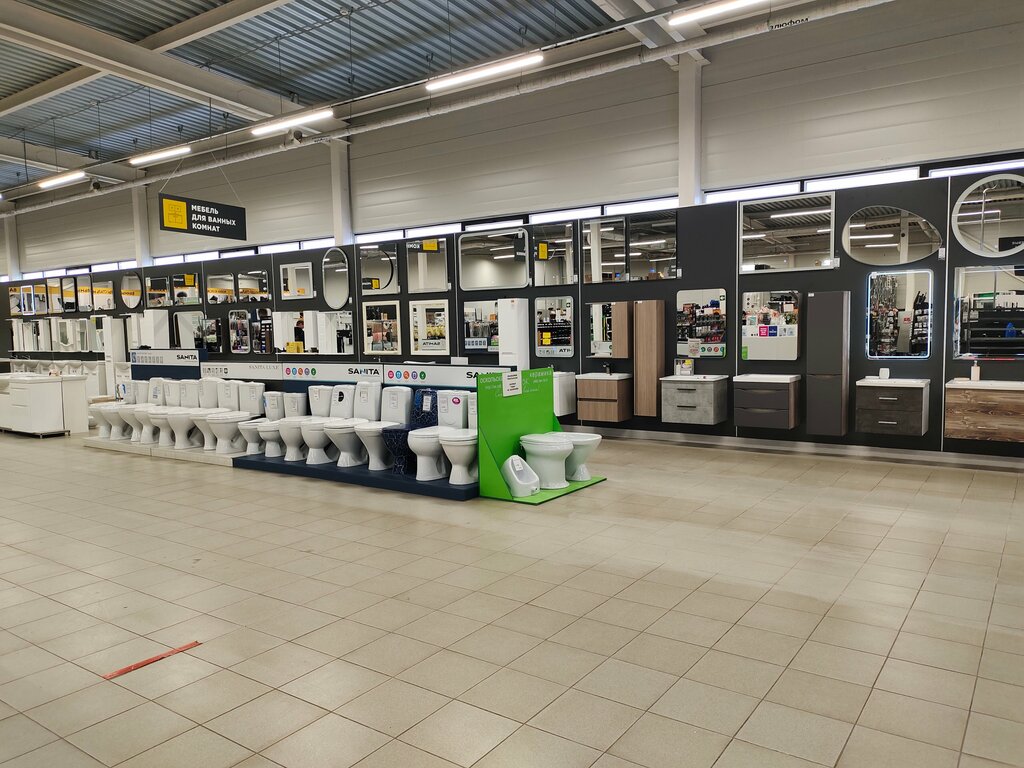 Можно найти всё в отделе сантехника -зеркала,унитазы,ванны, водонагреватель, смеситель,лейки,шланги,душ.кабины.....