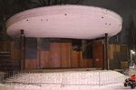Красивая сцена. Непонятно только для чего сделали круговой ступенчатый подъем? По которому нельзя ходить и он всегда огорожен убогим составным забором. Сделали бы уж классическую тумбу с боковым подъемом и калиткой. Смотрелось бы более стандартно, но не было бы этого весьма странного забора.