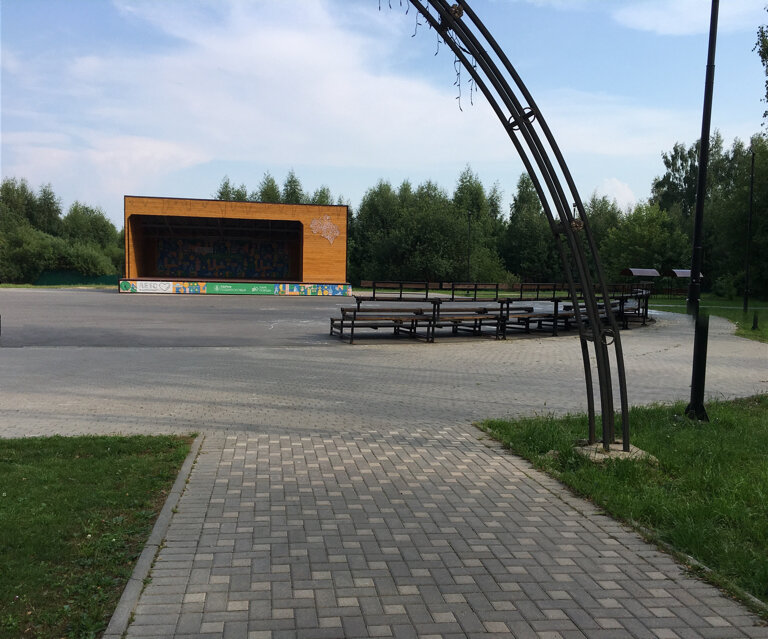 Летняя сцена в парке. С обеих сторон располагаются сидения как на стадионе.