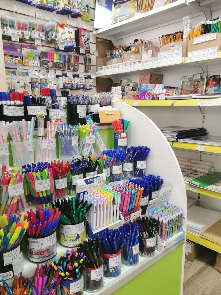 Магозин как магозин! пром товаров есть и ручки и блокнот выбирай что тебе нужно!