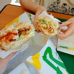 Хорошее место что бы посидеть в спокойной обстановке и насладиться едой. Если взять большой саб в хлебе то запросто можно наесться. Есть просто овощной саб, есть в лаваше, есть просто салат. Так же можно взять напитки холодные и горячие, десерты. Персонал приветливый. Ещё здесь работает приложение где можно копить баллы, а оно не везде работает.