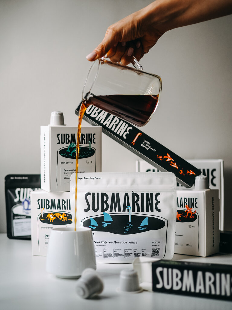 Приехала в шоурум-магазин Submarine за заказом кофе (будучи поклонницей их обжарки ещё в бытность компании Roasting Brew, хотя раньше только курьерской доставкой пользовалась), замёрзшая и уставшая. И быстро отогрелась здесь душой и телом: бариста сразу предложил продегустировать горячий фильтр-кофе. Пока с удовольствием его потягивала, огляделась: интересный интерьер, аппараты для обжарки, кофемашина и термосы с фильтр-кофе, всё разнообразие сортов зёрен в дрифт-пакетах, награда обжарщика года (в этом ребята действительно непревзойдённые мастера). В окно с улицы видно производственное помещение, и можно наблюдать процесс обжарки, а внутри шла подготовка к каппингу. Любопытно! Место атмосферное, конечно, но так удалено от метро и так не вдруг находится в скоплении строений по адресу Переведеновский пер., 18! Вся команда сугубо позитивна, общительна и приветлива. Резюме визита: здесь колоритно, стильно, вкусно, ароматно и дружелюбно. Пожалуй, стоит сюда заглядывать время от времени. До встречи в чашках! – как на прощание желают сами ребята на «Субмарине»