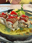 Я, можно сказать, фанатка этого заведения И на точке на ваське, и в ресторане было хорошо Роллы всегда были на высоте, часто знакомым рекомендовала, много что попробовала, но сегодня как-то неудачно вышло и я разочаровалась Видимо, что-то изменилось и роллы теперь не такие красивые и вкусные Сегодня было совсем посредственно и не вкусно Рис какой-то не такой, рыбы внутри меньше обычного и роллы криво закручены Я еще спросила предварительно есть ли авокадо в блюде, так как мне его сейчас нельзя, но вместо орехового соуса оказался как раз соус из авокадо на всю тарелку Ну как-то грустно совсем
