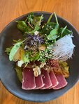 Были в Питере в долгой командировке с мужем, так что успели почти везде покушать на районе. Увидев высокую оценку на картах, решили зайти, но всё откладывали и откладывали - зашли в последний день) И на самом деле прогадали, так как времени покушать потом где-то ещё нормально у меня не было - скоро пора было выдвигаться в аэропорт. Я взяла себе роллы без риса. По составу в принципе всё люблю, жаль картинок нет в меню. Завернуть в огурец с одной стороны хорошая идея и необычная подача, но на деле все ингредиенты выскальзывают из ролла. Так ещё и буквально каждый ингредиент скользкий по своей текстуре, никаких других текстур нет. Жуешь скользкое нечто. Больше двух не осилила. Девушка-официант после сказала, что да, блюдо на любителя. Но лучше стоило это уточнить во время заказа, а не после)) Том ям взяли на двоих - вполне себе неплохой, но точно не лучший в моей жизни. Мини кукуруза - прикольно, а вот грибы нам не зашли. Муж взял «пельмени» (забыла название, на фото нет, так как не вынесли ещё). Тесто с начинкой оно и в Японии тесто с начинкой, так что в целом хорошее блюдо)) С другой стороны, цена не низкая, ожидания были выше у мужа. Если бы не роллы, которые мне, мягко говоря, не понравились - поставила бы 4, так как два других блюда в целом неплохи. А так 3, извините. 3 блюда вышли в районе 2к. Роллы из чека не убрали, заплатили за всё. Так что немного жаль потраченных денег, но не попробуешь - не узнаешь P.S. Мы очень любим азиатскую кухню, при этом как японскую, так и корейскую, и вьетнамскую, и тайскую и так далее) Так что насмотренность есть