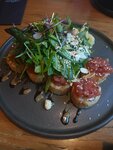 Из хорошего - это местоположение и внутренний дизайн. Остальное сильно завышено. Пиво китайское за 330 мл 450 руб. Оправданий кроме корысти не нахожу. Татаки с тунцом совершенно невыразительно. Понимаю трудности с поставками и пр. Потому не 2 звезды. Но лишенный натурального вкуса тунец на подушке из кабачка ( а с виду авокадо:)) - просто белок с пучком типа дайкона и пучком зелени типа рукколы без заправки. Максимально разорванные ожидания! Минусом музлон. Вроде не громкий, но очень плотный, общаться невозможно даже вблизи. Никогда не понимал зачем такая музыка в подобных заведениях, где посетители хотят не просто молча есть и пить. Мнение личное и, конечно, не претендует на объективность.