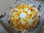 Состав: натуральный сыр моцарелла, томатный соус, бекон, лук салатный маринованный, куриное филе подкопченное, перец болгарский, соус BBQ.