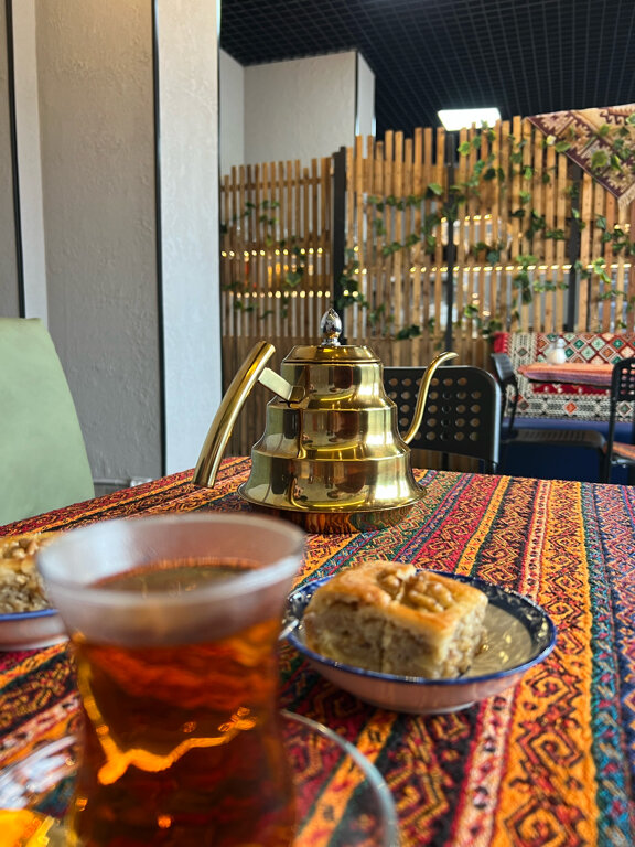 Замечательное уютное место, совмещающее в себе пекарню, магазин эко продуктов и кафе! Как мы поняли: 26.10.22 открылось после ремонта/реконструкции. Отзывчивые добрые люди вкусно по-домашнему нас накормили! Афары с тыквой и грецким орехом и просто с картофелем - сказка! Дагестанские лимонады и соки в ассортименте. Пахлава! Все свежее, горячее. Широкий ассортимент готовых замороженных продуктов таких, например, как курзе (национальное блюдо по типу пельменей). А также хлеб, лепёшки, пирожки, сладости и многое другое. Благодарим за гостеприимство, и обязательно приедем снова! Вид из окон на Матисов канал тоже очень радует! 💖😊 Процветания и развития!