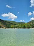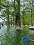 Отличная локация для посещения. Можно взять в аренду катамаран и доплыть до кипарисов. Вокруг озера прогулочная зона с табличками о запрете купания, но многие купаются. Дно с острыми камнями, лучше иметь специальную обувь. На территорию можно заехать на автомобиле за отдельну плату и есть парковка (250р). От входа на территорию до озера возят на открытых автомобильчиках (50р с человека).