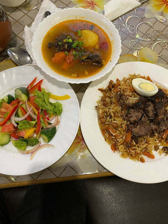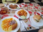 Традиционная кухня вкусная. Но ребята видимо решили расширить меню и добавили немного американской еды и это у них совсем никак, 2 из пяти за съедобность. Прикладываю две фото бургеров, как оно предлагается в меню и как оно выглядит на самом деле. Это не бургер, это что то вроде бутерброда. И такого размера бургеры в том же Burger King не стоят и 200 ₽. В целом можно поставить 4 с натяжкой от доброжелательного персонала.