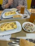 Приехали из Мелеуза, оделись так еще и вкусно покушали с мамой . Курица по французски очень вкусная , с грибами, салат превосходный. На двоих вышло 744 руб , приятная атмосфера, удобные диванчики . Вежливый персонал . Рекомендую