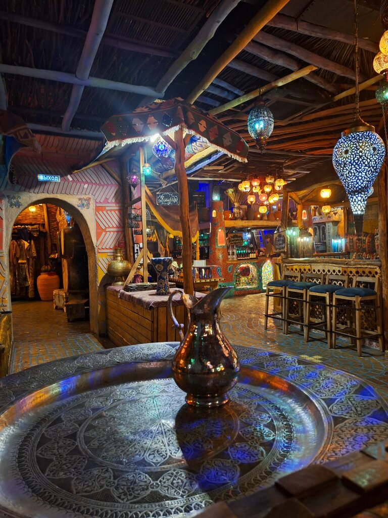 Место действительно сказачное! Думаю в отзывах часто встречается это слово) Ты будто попадаешь на торговые улочки древней Аграбы из мультфильма Аладдин))) В интерьере множество интересных мелочей - хочется всё разглядывать) Залы разные, а эти самые улочки, которые ведут к ним, так и дышат востоком!!! Сходите в уборную (даже, если и нет необходимости) - там услышите восточные сказки! Всюду шныряют торговцы, джины, танцовщицы - их наряды прооосто загляденье!!! Меню хорошее - мне вкусно! Цены очень даже приемлемые! Можно прийти и днём, а можно и вечером 🌙 А какие фото вы сделаете 😍❣️
