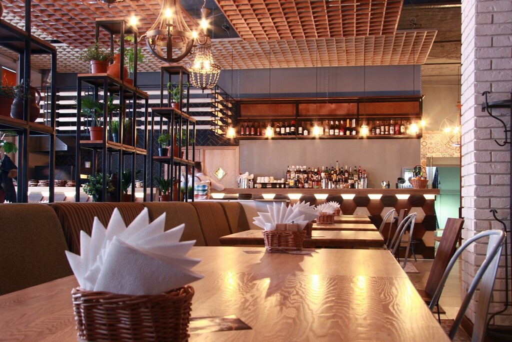Давно хотела посетить данный ресторан, сегодня получилось, началось все со входа, администратора не было на месте, пришлось спрашивать у бармена о наличии свободного столика, но через некоторое время появилась девушка-администратор, совершенно не приветливая и не располагающая к себе, но мы пришли в хорошем настроении и не обратили на это внимания, зато нам повезло с официантом, приятный молодой человек по имени Георгий, кстати еще один минус ресторана, что у официантов нет бейджиков с именем, пришлось спрашивать самим, быстрое приготовление блюд, вкусная еда, приятная атмосфера, но самый большой минус это очень грязный пол, причем было что то рассыпано из еды, но никто это не убирал, а в целом ресторан неплохой.