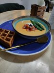 Была первый раз в заведении, нужно было где-то рядом быстро позавтракать и бежать дальше по делам. На самом деле очень все понравилось, взяла суп из батата с лососем, очень удивило, что он был островат (жаль это не было прописано в меню, что он острый немного, для завтрака было тяжеловато, но то, какой он был вкусный перекрывал это), порадовали творожный сыр внутри и горячая, свежая и хрустящая вафля рядом. Советую!