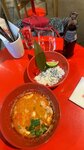 Вообще не рекомендую! К примеру у них взял попробовать том ям, который за такую цену ожидался быть прям Вау! Но видимо надо было уточнять, что они оказываются сразу льют кокосовое молоко в суп, при том немало, и он вообще теряет хоть какой-то свой вкус, он просто теперь красный кокосовый борщ, даже томаты есть, именно обычный помидор, не черри даже. Удивился, что хоть дали острый перчик, и даже была кинза, а не петрушка. Ну и спасибо, что хоть вешенки, хотя могли все таки иноки добавлять за такую стоимость, ибо четверть гриба ну явно будет стоить копейки по себестоимости. Рис норм, клейкий, как должен быть. И да, я знаю за современные тенденции в гастрономии по унижению Том Ям, но это даже слишком.