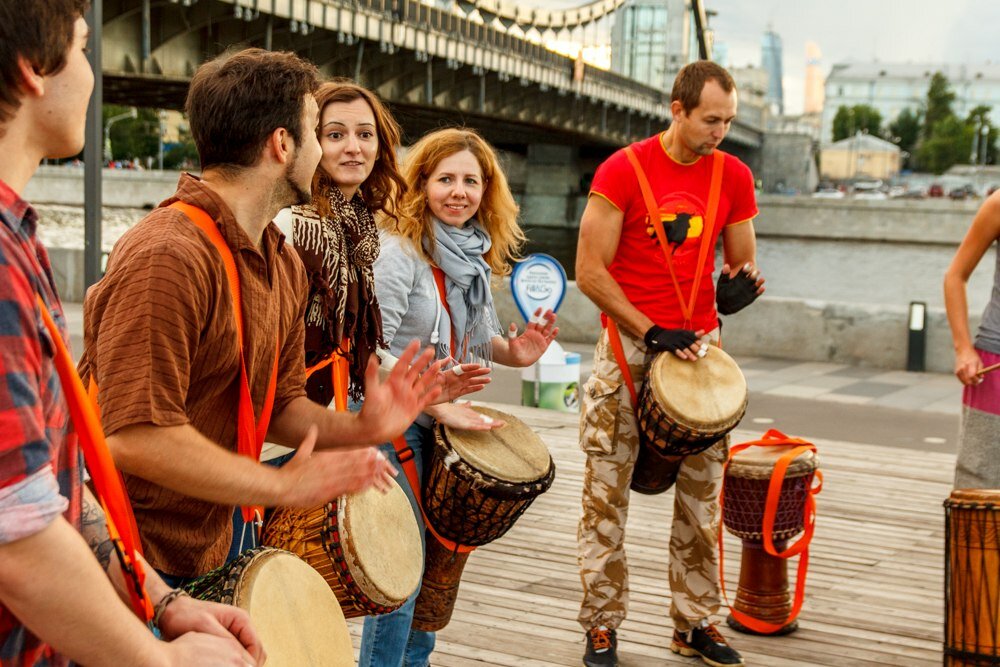 Если хотите вырваться из рутины повседневности, встретить нормальных, открытых и увлеченных людей - вам сюда! И не важен возраст, пол и уровень подготовки, только огонь внутри. И даже если огня не хватает, то им поделятся. Лучшие люди обитают именно здесь! Да, ну это эмоции, а факты - здесь учат играть на барабанах-джембе, и еще на массе звучащих приспособлений, варган, калимба, бубен, диджериду и пр. Мастера лучшие, занятия как групповые, так и индивидуальные. Летние джемы в парках, отчетные концерты, поездки в барабанные лагеря, и куча всякого движа, как только вы нырнете в эту историю. Главное, сделать первый шаг!