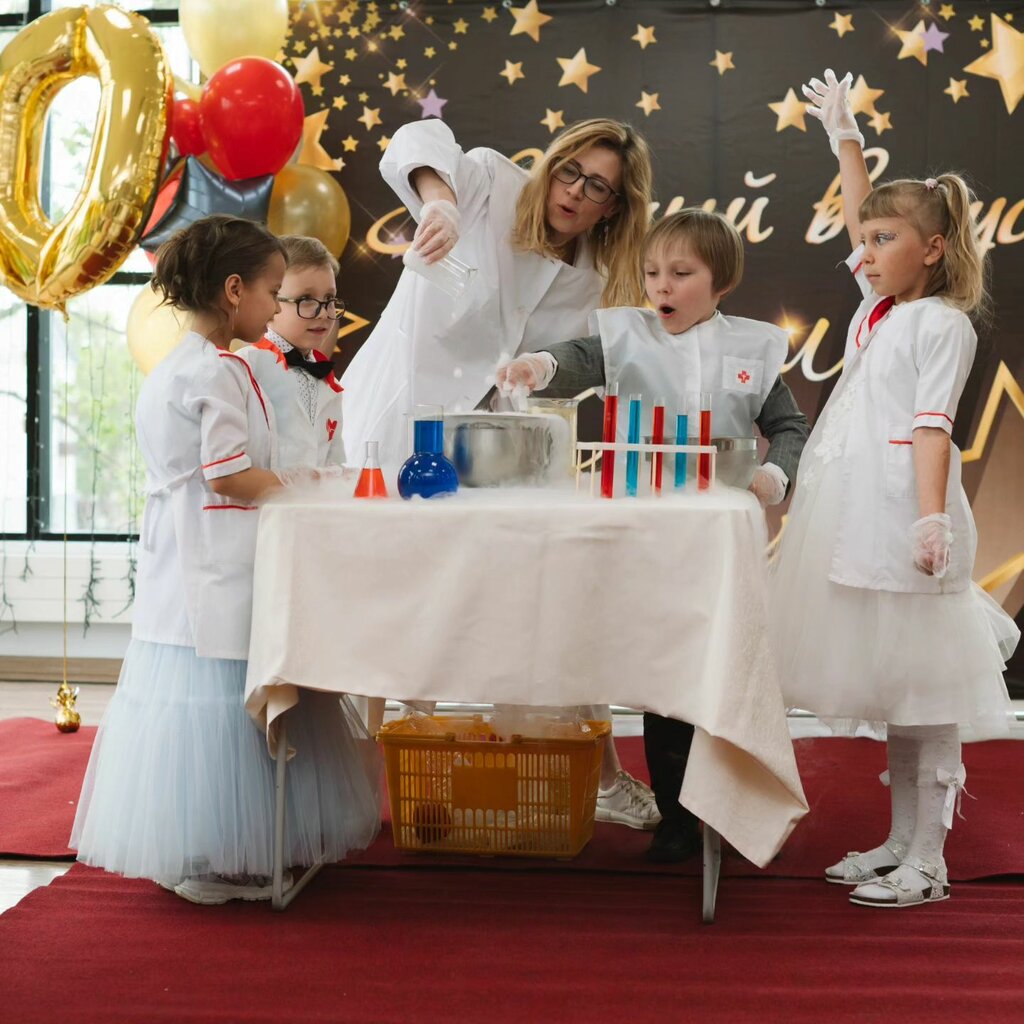 Отмечали внучке День рождения, были детки с родителями. Помещения на втором этаже, лестницы высокие В помещении мы сняли обувь, всё были в носках, сначала был чай, как я поняла от заведения, по случайности лопнул 2-х литровый чайник -заварник из стекла и прям на моё платье, не знаю как такое возможно, хорошо что никто не пострадал более, потом детям принесли карандаши, они стали рисовать ими, в специальной подготовленной части зала, потом какие-то краски, дети и взрослые или мазались. Потом стали отмывать краску и собираться домой. Когда я одетая стала спускаться, свет на лестнице вообще погас, хорошо что в
