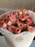 Прекрасный букет мне составили флористы для др подруги! Нежный, красивый! Доставка быстрая, в указанное мной время букет был на месте! Обращалась удаленно через группу вк, отвечают быстро и вежливо! Перед доставкой скинули фотографию готового букета, что очень удобно! Получатель букета осталась довольна! Спасибо! Буду заказывать цветочки еще!👍