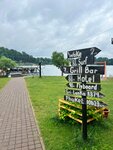 Заехал случайно в этот прекрасный гриль бар: фантастическая атмосфера спокойствия и релакса. Много посадочных мест: терраса, шатер, помещение. Все утопает в зелени, рядом катаются на Вейке, вид на озеро и пляж. Готовят вкусно: пробовал , шашлык. Вкусные салаты. Вино тоже понравилось. Спасибо!